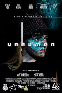 Here is the official poster for 'Unhuman' Starring Da'Neille Bishop Roy, Sara Moore, Kelsey Hood, Christophe Murdock and Charles W Day. Directed by Mike Ransburg for Team Star Swamp, LLC's Sci-Fi film in the